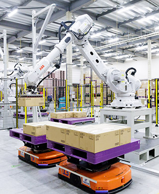 システムの開発から管理までお客様の物流に合わせてカスタマイズするとともに、ロボット導入で作業の自動化も進めています。