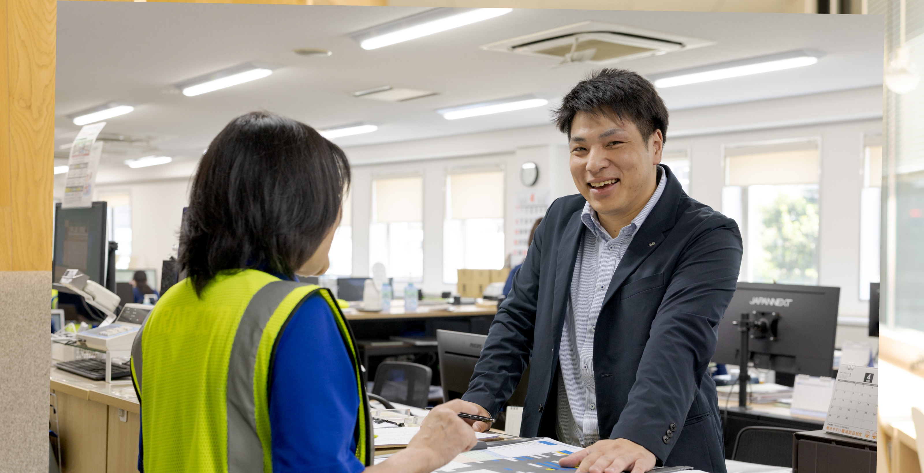 現在は静岡清水事業所の所長として、収益向上に向けた改善活動や拠点運営全般を担っています。従業員が笑顔で出勤し、安全に一日を終えること。そして、あなたが所長で良かった、と言われることが、私の目標です。所長といっても、私一人の力でできることは限られています。野球が9人で力を合わせるように、さまざまな仲間がそれぞれの持ち場で力を発揮してくれるからこそ、拠点は成り立っています。だからこそ、常に周りの方への感謝の気持ちを忘れず、頼り、頼られる関係性を築くことを大切にしています。