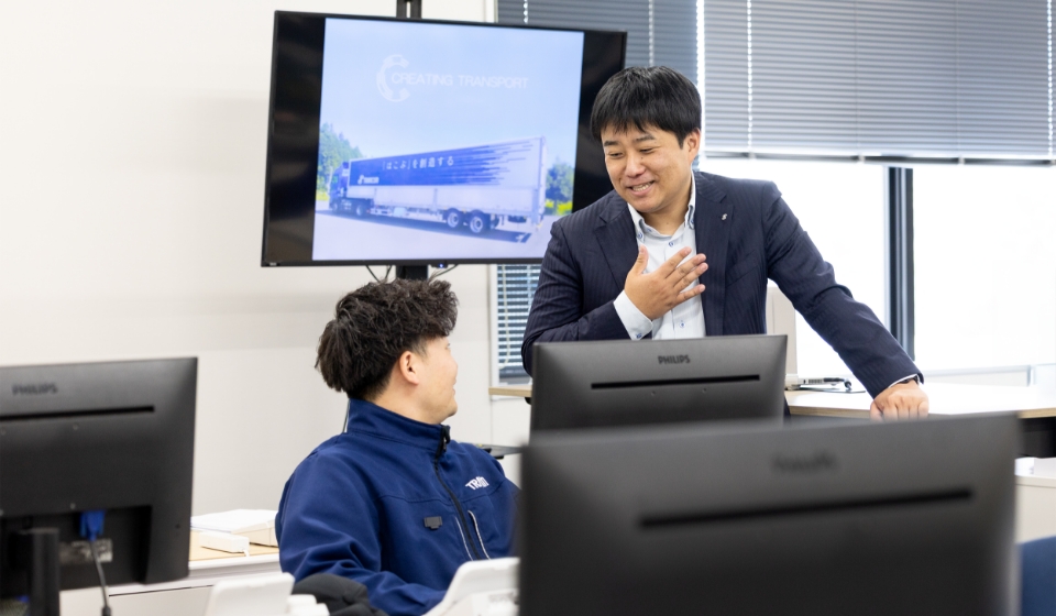 所長としての仕事のやりがいといえば、私個人よりも、事業所が評価されること。最近では自動化による業務改善にも取り組んだのですが、変化に抵抗があった従業員とも対話を重ね、自動化の目的を拠点で共有することで、最終的に目標を達成できました。その取り組みは社内の改善発表会でも取り上げられ、私たちの事業所が最優秀賞を獲得。拠点で成果を出せたことは嬉しかったですね。若いうちから責任ある仕事を任され、成長したいと考えている方には、トランコムは最高の環境だと思います。